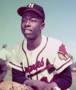 He became a Brave at twenty after the team moved to Milwaukee. He finished fourth in the 1954 National League Rookie of the Year award. He joined white teammate/future manager Eddie Mathews as the Show’s best pair of power teammates since Ruth and Lou Gehrig, whom they surpassed in due course. (Ruth and Gehrig as Yankees: 1,150 home runs between them. Aaron and Mathews as Braves: 1,226 home runs between them. Note: Gehrig as a Yankee and Mathews as a Brave hit the same number of home runs: 493.)